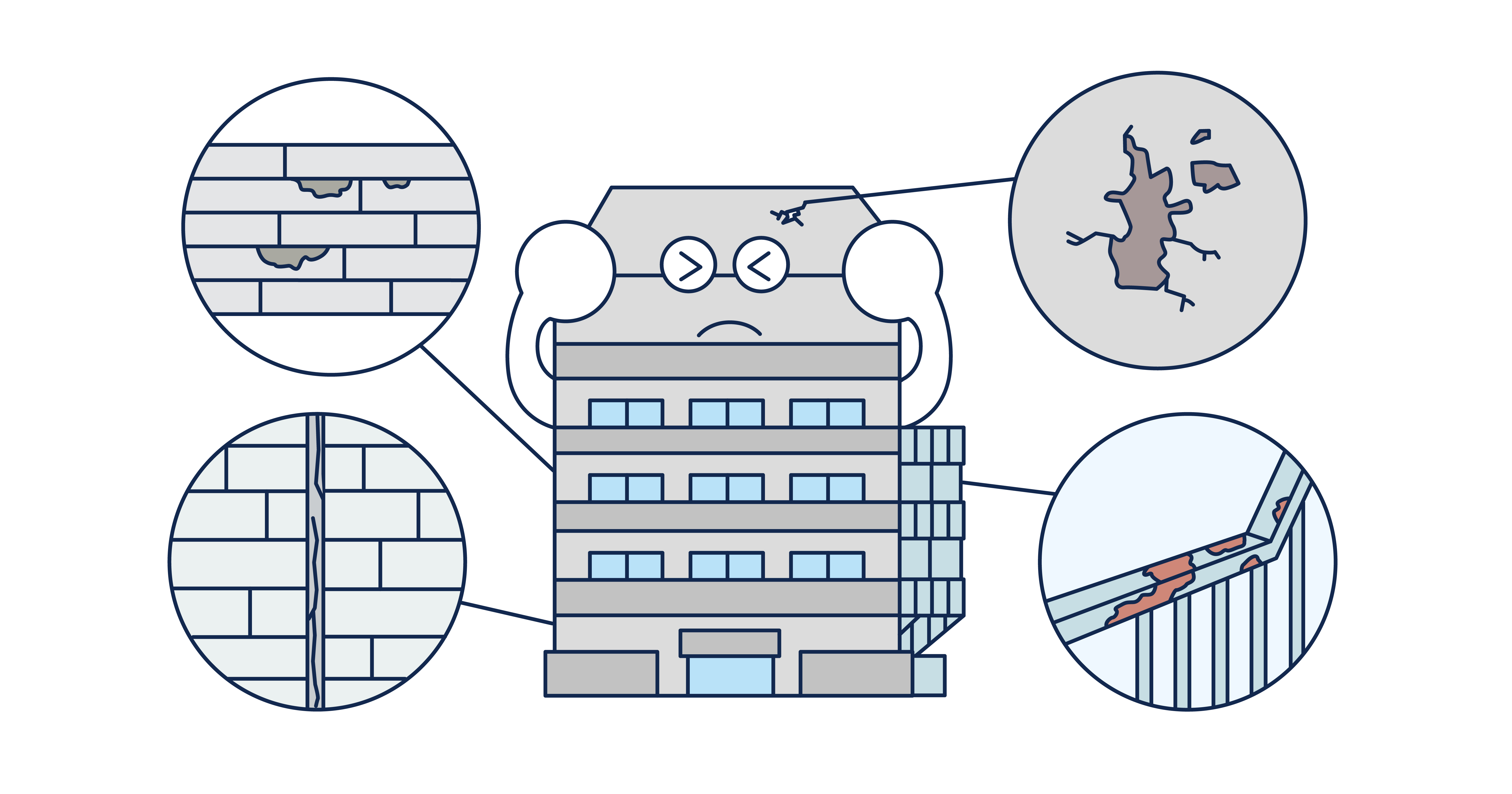 一方で、構造部のコンクリート躯体(くたい)そのものの補修は25〜40年が目安とされており、毎回の大規模修繕で抜本的なメンテナンスを行う必要はありません 。ただし、表面のひび割れ(クラック)や欠損などは、放置すると内部の鉄筋を錆びさせ、建物の寿命を縮める原因となります。そのため、大掛かりな補修は不要でも、毎回の大規模修繕時に必ず点検を行い、必要に応じて部分的な補修を施すのが一般的です。