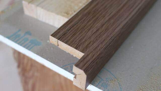 枠を取り付けたら内側に戸当りを付けます。(戸当りはビスを隠す役割もあります。)