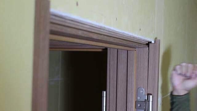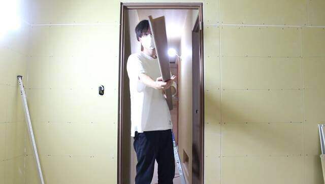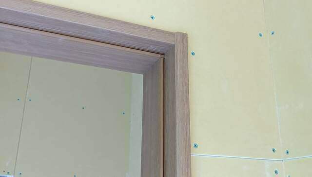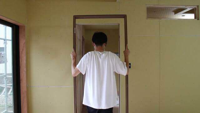 固定枠タイプを設置する場合、枠に石膏ボードをピッタリ付けることができないので、ドア枠を先に取り付けてから枠回りの石膏ボードを張るのが普通です。