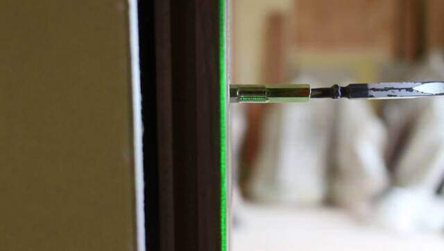 ケーシングタイプは枠の裏側に刃がついた金具があり、その金具で真っ直ぐ調整できるようになっています。(同じ位置にビスを打ち込める穴が空いています)