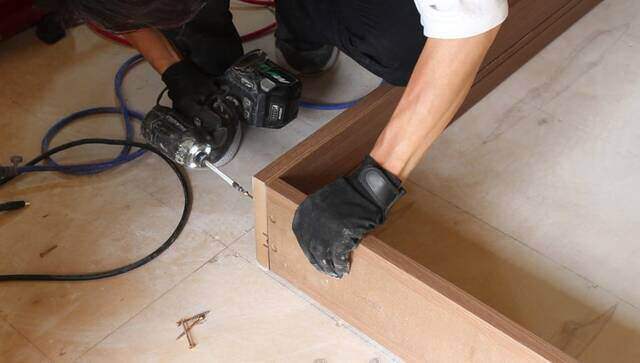 ビス打ち機で片手でも打ち込めるので、左手で石膏ボードを支えながら固定できました。