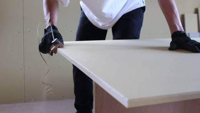 石膏ボードが重なる上部分は面取りをしてパテが入る状態にしておきます。