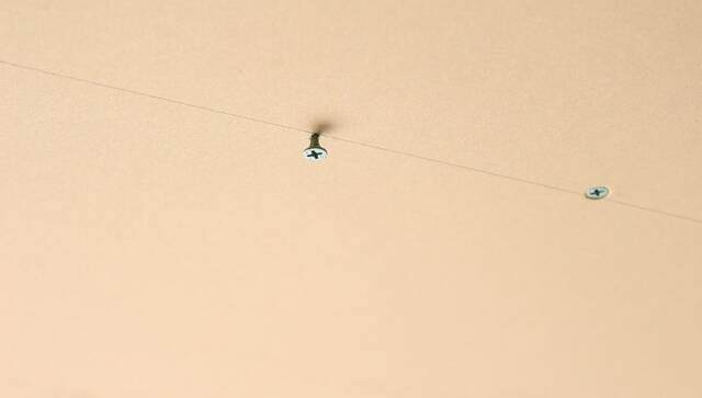 いつもは脚立を補助替わりにして張っていましたが、今回はビス打ち機があるので補助なしで張ります。(頭で支えつつ微調整や休憩をするのは変わらずでした)