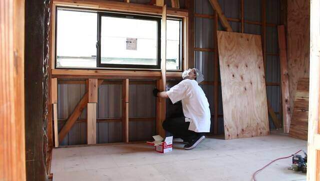 前回は柱を抜いて合わせ梁で補強、その後天井の下地を作る作業でした。今回は壁の下地を作って断熱材を詰める所までの作業です。