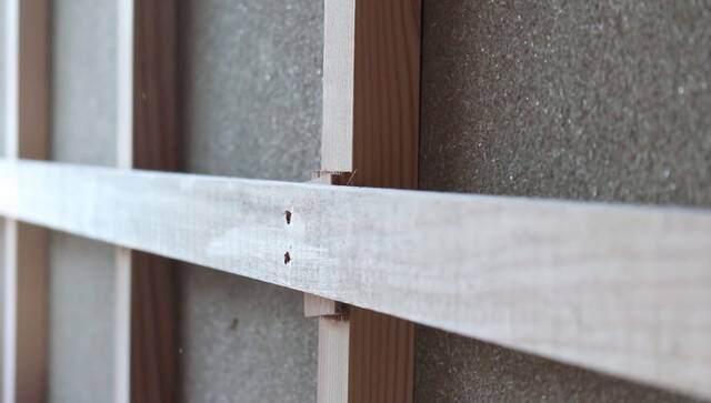 3mmと5mmのベニヤを小さく切って、胴縁の間に入れるスペーサーを作ります。