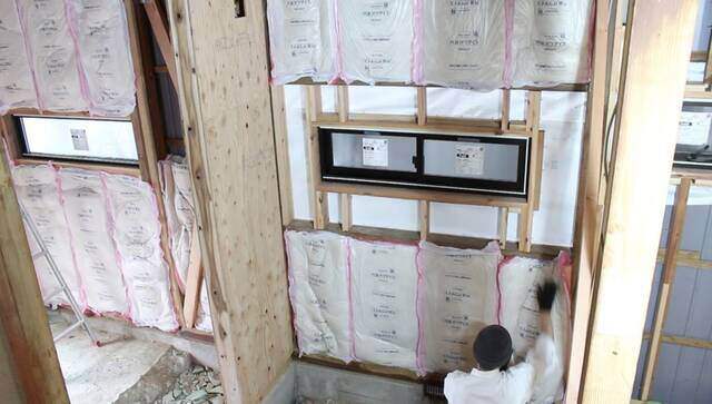 1階の壁にも間柱を追加して断熱材を入れていきます。