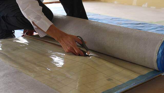 ※(レーザー墨出し器で線を出しておくと真っ直ぐ貼ることができます)