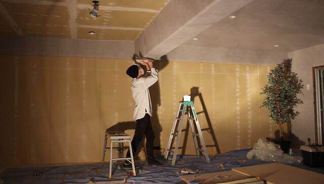 この部屋の天井は12畳とかなり広いので、以前の方法だとどうしても繋ぎ目の処理が大変です。