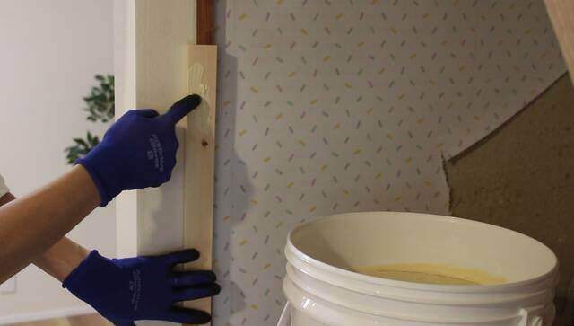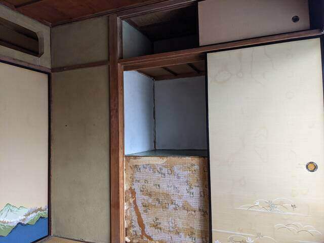 この壁を仕上げるには、壁紙を剥いで土壁を固めて処理する必要があります。