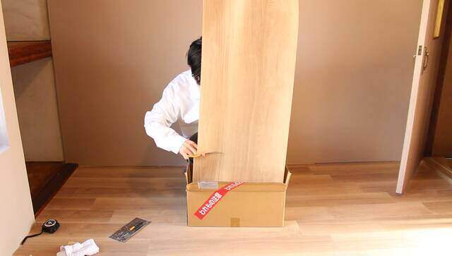 2階押入れはフローリングと同じ色の「ウィンザーオーク」を貼って仕上げます。