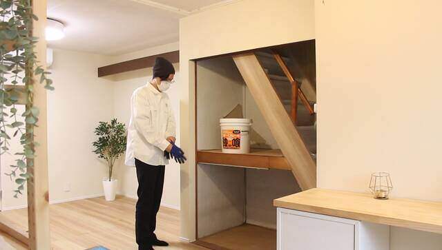 階段下の土壁押入れは「漆喰うま〜くヌレール」でDIY