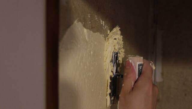 乾燥させたら漆喰を砂壁に塗ります。(製品情報では24時間以上の乾燥を推奨しています)