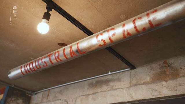 天井に設置されているのは「INDUSTRIAL SPACE」と書かれたパイプ……?実にさまざまなカルチャーが詰め込まれたお家ですね。