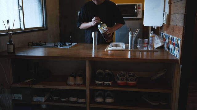 キッチンカウンターは、なんと下駄箱と一体型です。料理をすると油が飛ぶので仕切りをしているのだとか。
