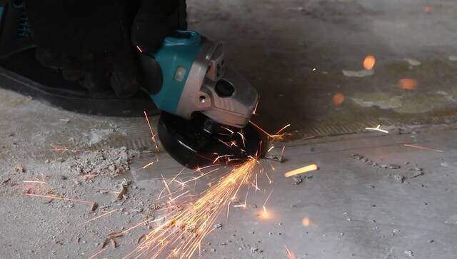このままにしておくのは危ないので、ディスクグラインダーで削り取ります。