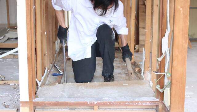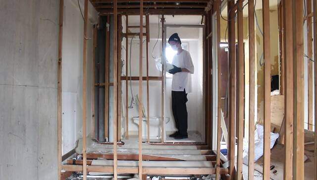 今回は廊下とトイレの解体、リビングキッチンのCF剥がし作業です。