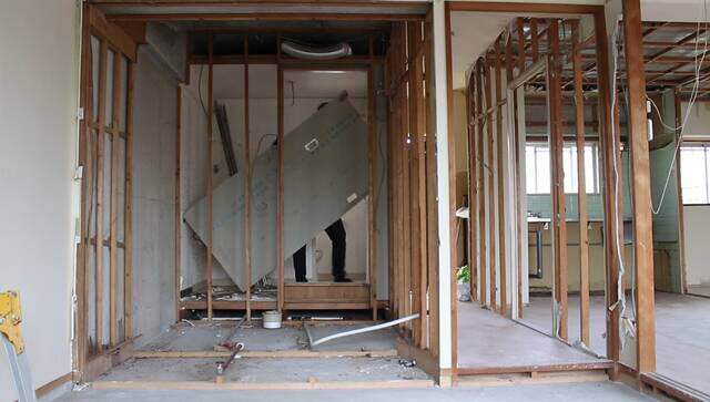 壁、天井、床、キッチン、お風呂、洗面所、トイレ、廊下、下駄箱、全て解体。