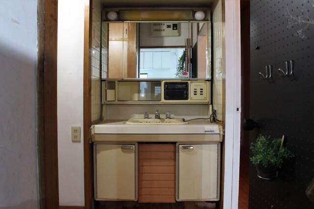 レトロな感じの洗面台が残っている家。