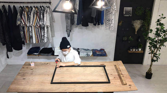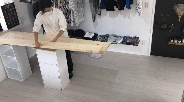 実際のサイズ感や完成形のイメージを固める為に天板を仮置きして雰囲気を確かめます。
