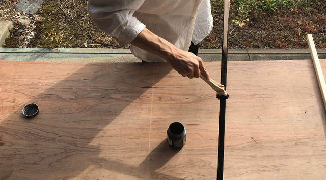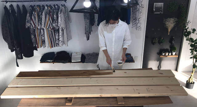 カウンターテーブルで食事をすることも考えているので、掃除をしやすいよう表面に薄い被膜をはるウレタンニスを塗ります。