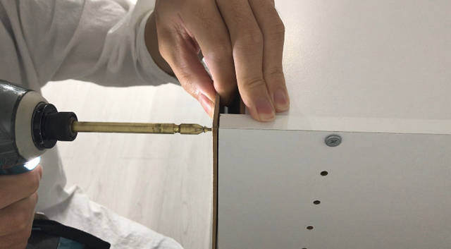 化粧板は厚さ3mmなので、ベニヤ板用の極細ビスを使います。
