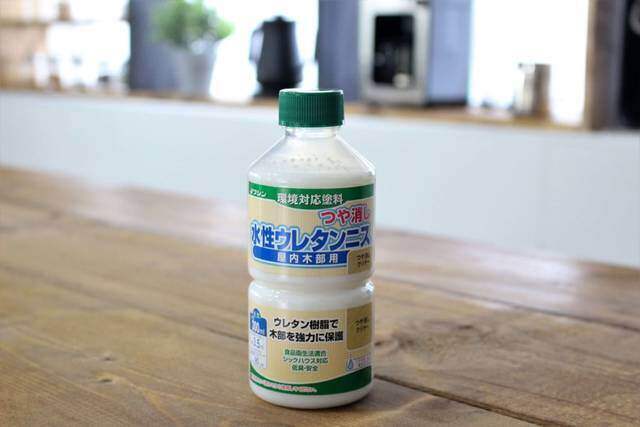 ※個人的にテカテカした表面があまり好きではないので、つや消しタイプの水性ウレタンニスを使いました