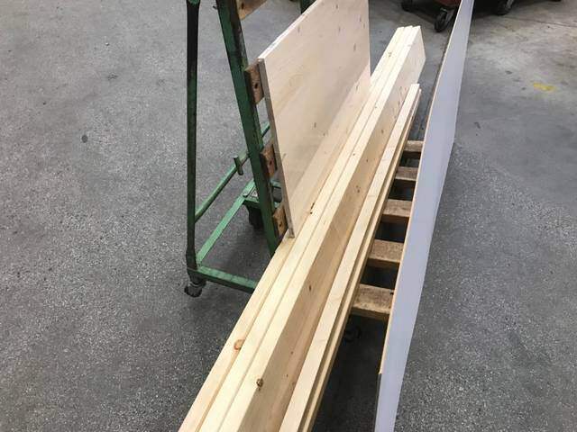 カラーボックスと反対側の脚は、38mmの角材を格子状にして作ろうと考えていましたが、ちょっとクドイ感じがしたのでやめました。