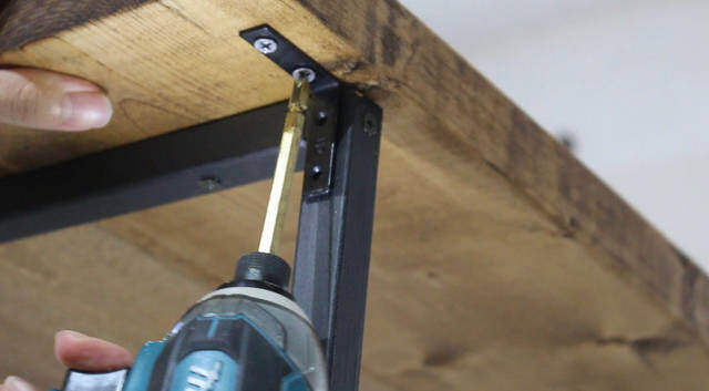 天板の端に取り付けるので、ビスが見えないよう同じアイアン色を選んでいます。