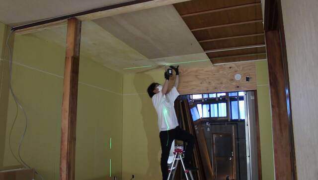 壁際が揃っているか確認しながら天井を埋めていきます。