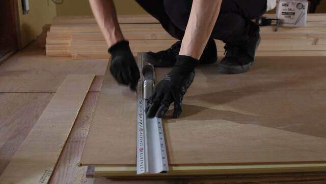 (比較的簡単と言っても1820mm×910mmのベニヤ板を片手で支えて壁際に合わせるのは難しいので、できれば2人で作業することをおすすめします)