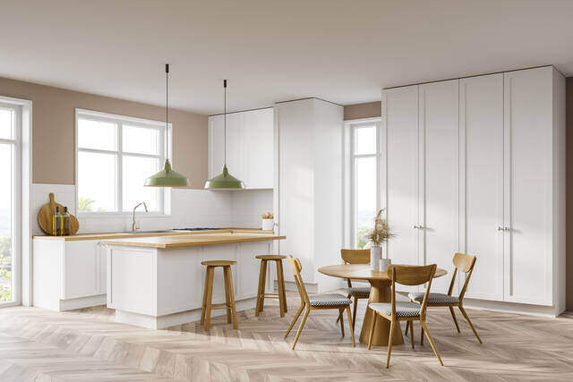 キッチンは水や火を扱うため、床や壁紙がほかの場所より劣化しやすいと言われています。耐水性の高い壁紙や、掃除のしやすい床材などを選べば、より快適なキッチンが作れるでしょう。デザインを考える際は、リビングとカラーや素材感などを合わせると、より統一感のある空間に仕上がります。