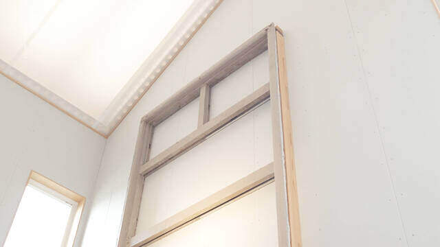 外観だけでなく、室内にも枠だけ残しています。