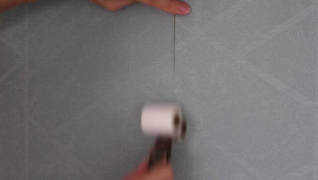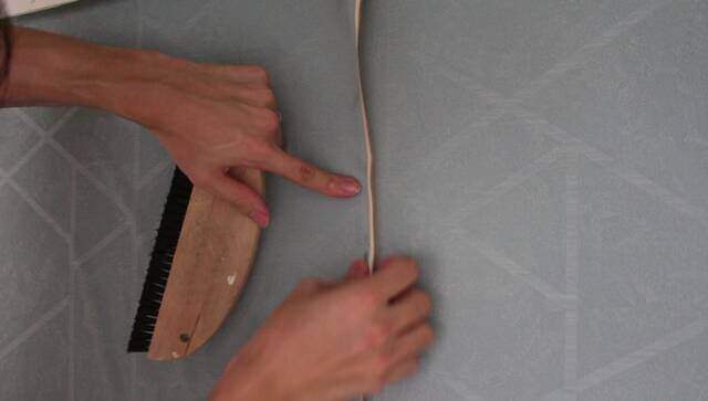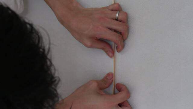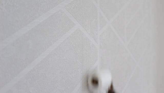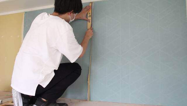 模様が入っている壁紙なので、繋ぎ目のラインが合うように確認しながら貼ります。