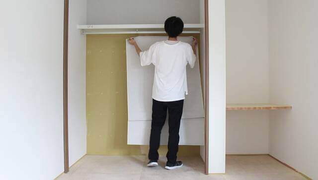隣の部屋のクローゼットは色違いので 「サンゲツ」のRE53015 Re'SERVE リザーブ1000を貼ります。