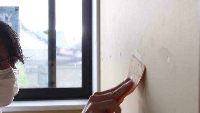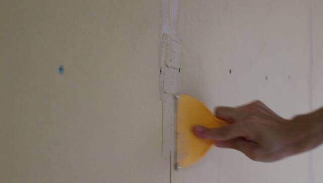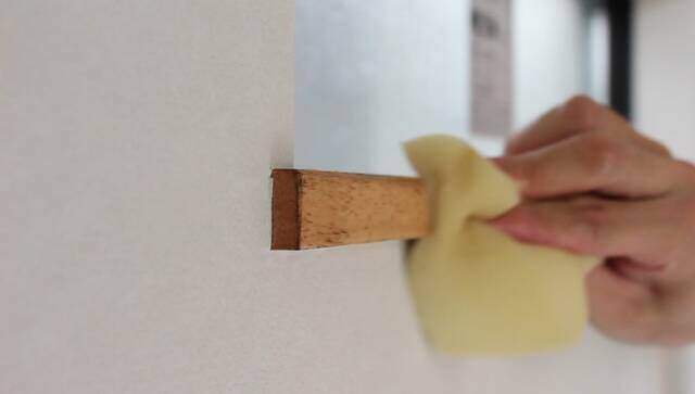 壁紙を貼る前にヤスリでパテを軽く削り整えます。