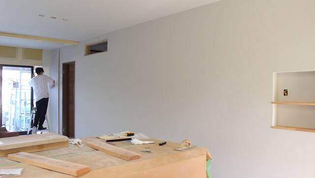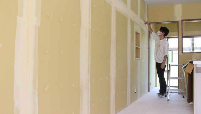 石膏ボードがガタガタしている場合などは、中塗りを入れて3回で仕上げることもありますが、それだと時間がかかり過ぎて費用にあわないので基本は2回塗りで仕上げます。