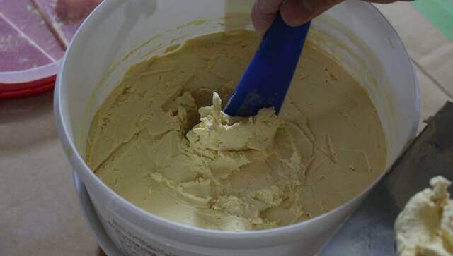 パテは押し込むように塗るので、ずっと塗っていると人差し指と中指がつりそうになります。