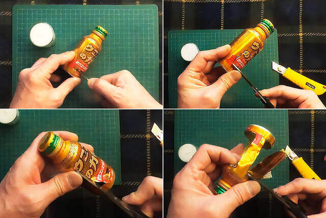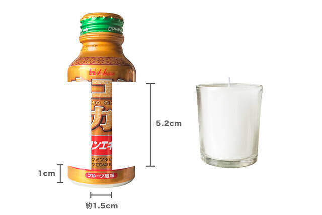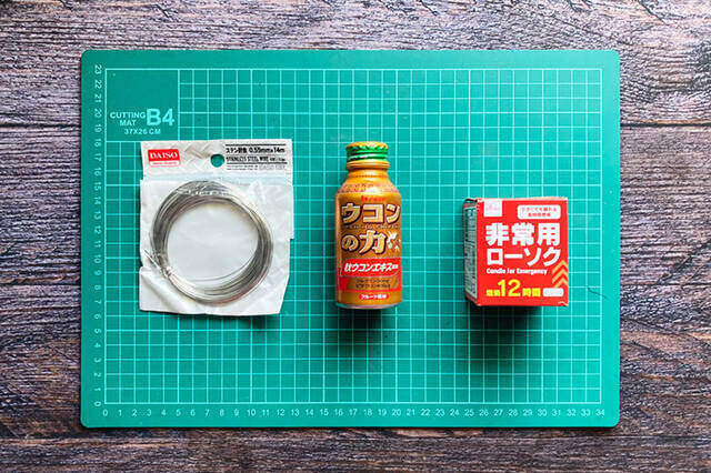 ウコンドリンク(100ml)の空き缶の側面を、「非常用ローソク」が入る大きさに切り抜きます。