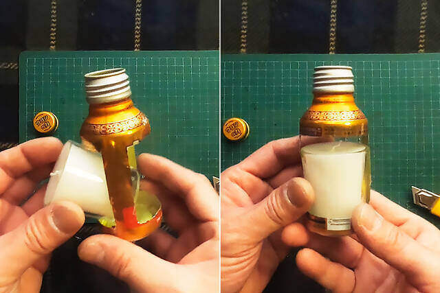 これは最初に紙ヤスリで塗装を落とし、ボトルネックの余分な部分をカットしたものです。