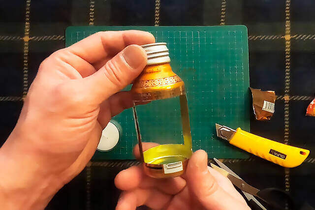 使用したウコン缶は首回りの柄がなかなかいい味を出してくれるので、塗装は落とさずに一番簡単な作り方をご紹介しましたが、塗装を落として作るとこんな感じになります。