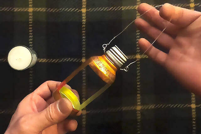 ウコンドリンクの空き缶で簡単に作れる吊り下げ式のキャンドルランタンです。