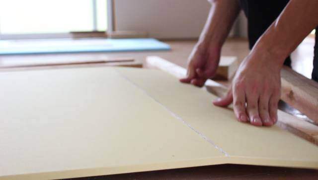 切れ目を入れた石膏ボードは上から軽く抑えるだけで「パキッ」と簡単に折れます。