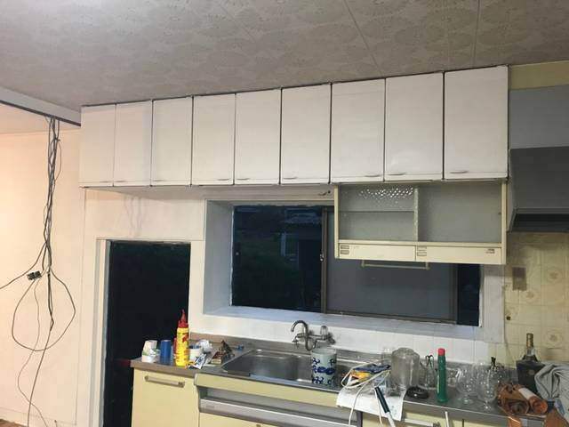今回はキッチンの備え付け棚を解体して、塗装する様子をご紹介します。