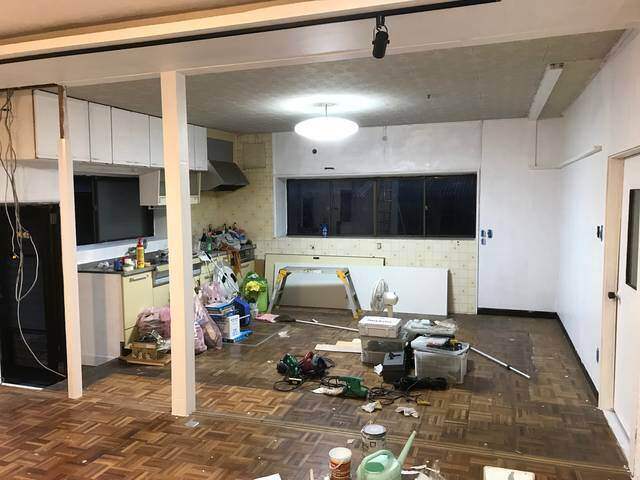 次回は、奥の出窓に化粧板を貼る作業と壁を解体した後の床の隙間を埋める作業です!