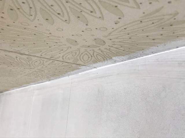 パテ処理は天井と壁の間についている廻縁(まわりぶち)を撤去した部分の隙間に埋めていきます。