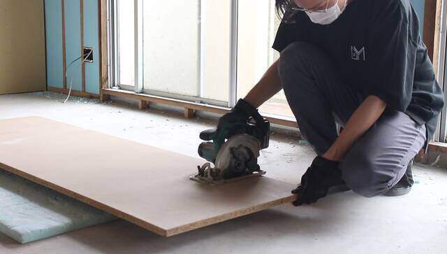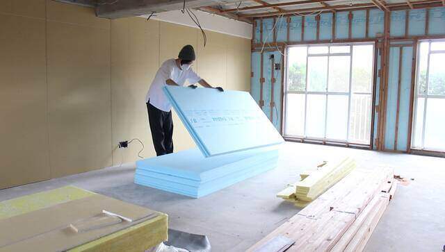 北海道など北国の方だと60mm~70mmは使うと聞いたことがあります。住む地域によっても変わりそうです。断熱性を高める為には隙間を開けない方が良いので、気持ち1mm~2mm大き目にカットしはめ込みます。(スタイロフォームはカッターで簡単に加工できます。)