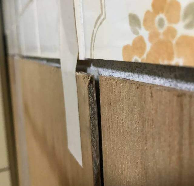 この段階でタイルを剥がしたり、パテで隙間を埋めたり、時間がかかる作業はしたくないので、多少見栄えが悪くてもなんとか化粧板を張り付ける方法がないか考えました。