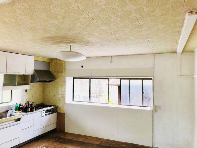 このキッチンは、元々10畳間と壁を隔てていたのですが、以前リノベーションで壁を壊し、一間に改造しています。そのときの様子がこちら。