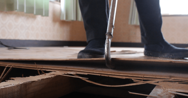 床を剥ぐ際は、そういった傷んでいる部分にバールを突っ込んで剥いでいきます。