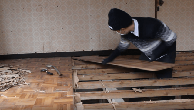 28歳で福岡へ移住し、築40年を超える2件の物件をセルフリノベーションしながら生活。その様子をブログメディア「DIY MAGAZINE」で公開しているセーチです。前回、砂壁で薄暗い印象の8畳和室と8畳洋間を繋げる作業でした。今回は両部屋の床を作り直す為に床を剥がしていきます。
